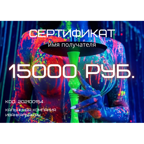 Купите Сертификат номиналом 15000 руб. по цене 15 000 руб. с доставкой в Уфа от сети кальянных магазинов ИванКальян.РУ.
