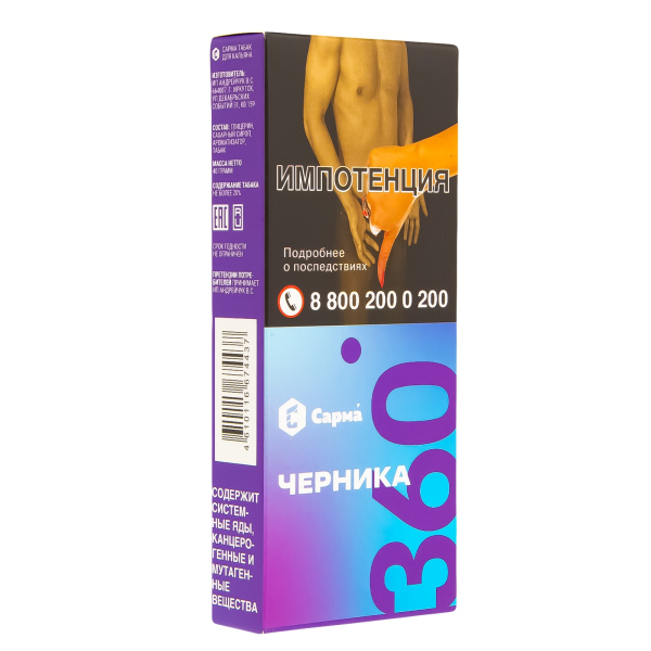 Купите Табак Сарма 360 Лёгкая Черника 40 грамм по цене 359 руб. с доставкой в Уфа от сети кальянных магазинов ИванКальян.РУ.