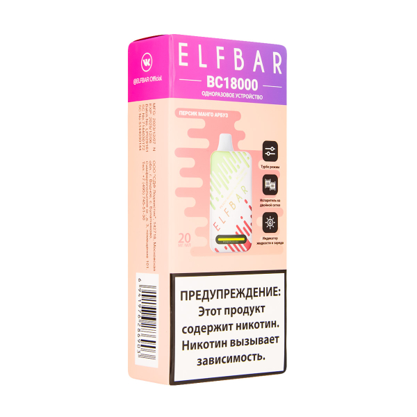 Купите Электронка ElfBar BC18000 Персик Манго Арбуз 20 Мг по цене 2 590 руб. с доставкой в Уфа от сети кальянных магазинов ИванКальян.РУ.