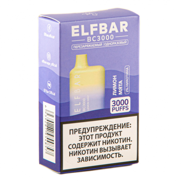 Купите ELF BAR Lemon Mint (3000 затяжек) 20 мг по цене 1 790 руб. с доставкой в Уфа от сети кальянных магазинов ИванКальян.РУ.