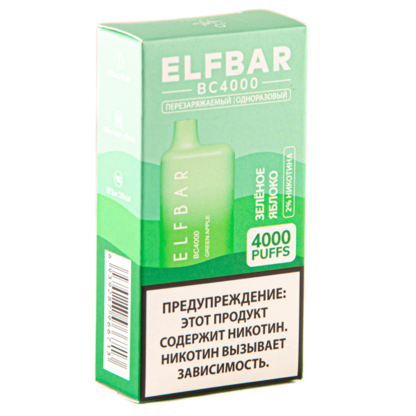 Купите ELF BAR Green Apple (4000 затяжек) 20 мг по цене 1 990 руб. с доставкой в Уфа от сети кальянных магазинов ИванКальян.РУ.